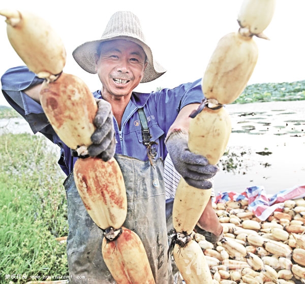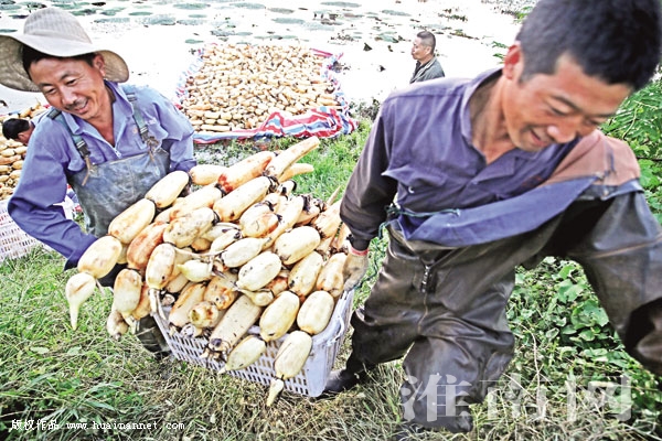 9月18日,大通区孔店乡村民在蔡城塘起获、清理莲藕准备上市销售。金秋时节,孔店乡6千余亩莲藕喜获丰收,村民们加紧起藕上市,抢占市场。大通区围绕农民增收,大力改造低洼田块、废弃塘口6千余亩,引导农民种植投入少、见效快、效益高、无公害的莲藕,年产量可达1.5万吨。