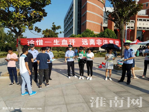 9月18日下午,田家庵公安分局经侦大队联合龙泉派出所在淮南师范学院开展了防范非法集资宣传活动。