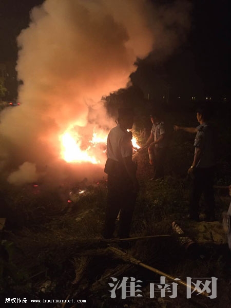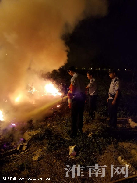 9月21日晚,新集公安分局巡防大队民警在山南新区半山家园小区附近巡逻时,发现一起火情,与前来的市消防支队特勤中队消防战士、山南分局淮河路派出所民警合力将大火控制住。
