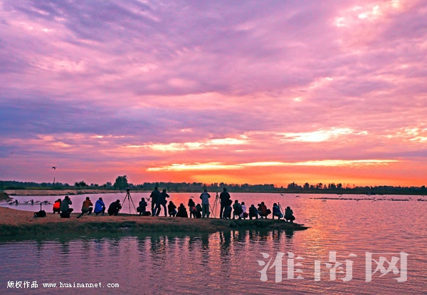 10月10日,摄影爱好者在瓦埠湖拍摄日出。当下,谢家集区孤堆回族乡境内的瓦埠湖畔,成群的白鹭、野鸭、大雁等在晨曦中自由飞翔,与金色的芦苇和蓝天碧水构成了一幅美丽的画卷。每年的这个季节都有大批候鸟在瓦埠湖畔逗留栖息,它是我市一道亮丽的风景,同时也吸引了众多摄影爱好者前往拍摄。