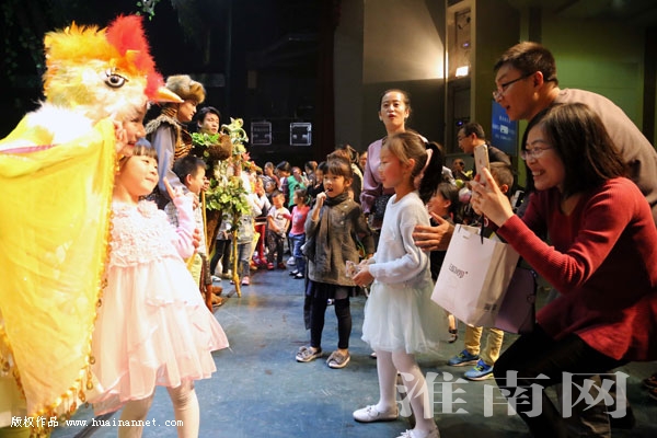 10月9日晚,安徽省歌舞剧院内近百名合肥观众奔向舞台,争着与谢幕的演员举手“拉钩”。他们以难以抑制的热情,表达自己对刚刚上演的由淮南艺术剧院主创的童话音乐剧《拉钩上吊,一百年不许变》的喜爱。据悉,这是该剧作为第十一届安徽省艺术节优秀剧目、第三届安徽文化惠民消费季·好戏大家看参演节目,首次走出淮南来到省城演出。