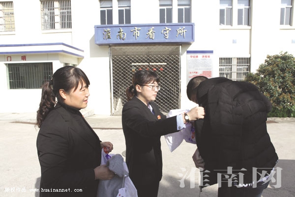 11月4日上午9时,在淮南市看守所门口,几个人手里拿着全新的衣物等待着。她们不是谁的亲戚,而是田家庵区法院少年法庭的法官们,正在等待因盗窃入狱,当日刑满释放的小龙。她们到此正是为了迎接他的“新生”,同时也送上她们的爱心。