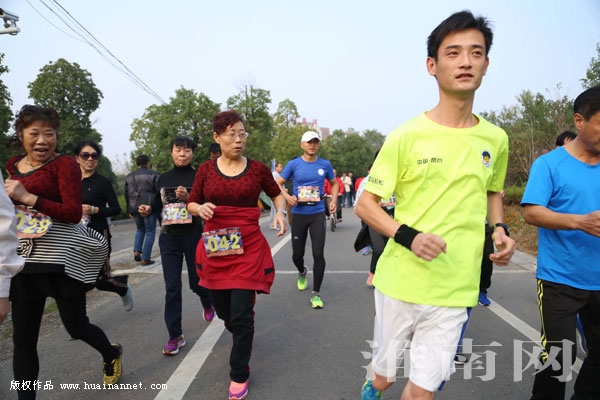 图为:报名参加淮南万达广场·2016淮南国际半程马拉松赛的淮南本土选手进行积极训练。