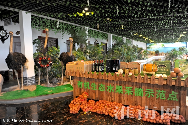 走着,看着,说着。很快时间已至中午,我和朋友一道来到园区内的农家乐餐厅。只见大厅中央,三只鸵鸟标本栩栩如生,旁边鸵鸟蛋壳做成的工艺品吸引了众多游客。午餐,大白菜、萝卜等季节性蔬菜,成为餐桌上的最爱。在品尝了地道的农家美食之后,我们踏上了返程。
