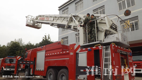 图:消防官兵操作云梯车(图片由谢家集消防大队提供)