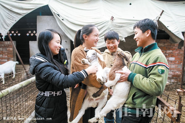 图为11月8日,毛集实验区陈集学校的孩子们在附近的羊圈中进行实践活动。
