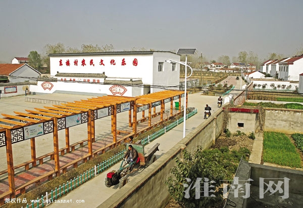 寿县保义镇东楼村是2015年度美丽乡村建设省级中心村。今年以来,东楼村根据中心村规划,精心建设休闲广场,配套文化墙、舞台、健身器材、太阳能路灯、文化廊亭等基础设施。新建300平方米农民文化乐园,内设展厅、电子阅览室、道德讲堂等功能室,使之成为兼具道德建设、文化传承、培训学习、文体娱乐等多种功能的文化综合体,有效改善了人居环境。