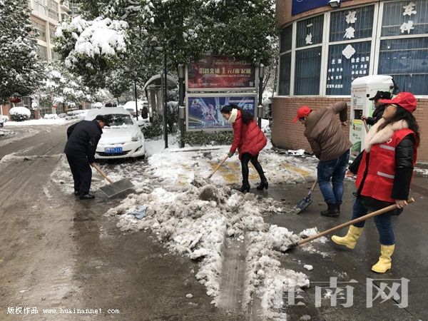 为了方便居民出行,让他们能安全顺利的回家,下午一上班,八公山区建东社区负责人就急忙联系辖区建南小区物业公司的工作人员,并亲自带领他们来到建东社区建南村的主干道上除雪。大家有的手持大铁锹,有的手握长笤帚,热火朝天地投入到扫雪行动中。不一会儿,在一片白茫茫的雪地中就出现了一条干净的主干道。社区工作人员和志愿者们一边扫雪,一边告诫路过的居民,提醒他们雪天路滑,要小心走路,得到了居民的交口称赞。
