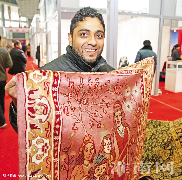 图七:巴基斯坦客商展示精美手工编织羊毛地毯