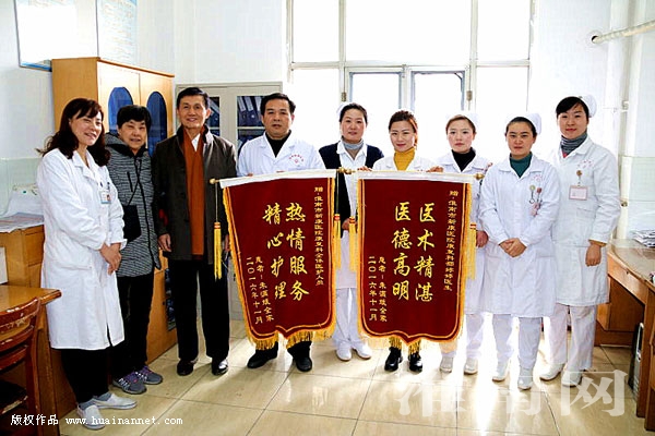 常言说得好,金杯、银杯不如市民的口碑,金奖、银奖不如百姓的夸奖。11月28日上午,家住大通居仁村的朱老先生和老伴一起来到淮南新康医院康复医学科,将两面绣有“医术精湛,医德高尚”和“热情服务,精心护理”的锦旗亲手送到汪宗保博士后和邵婷婷医生手里,以表达对康复医学科全体医护人员的感谢。一些患者和家属十分好奇,纷纷询问事情的缘由。