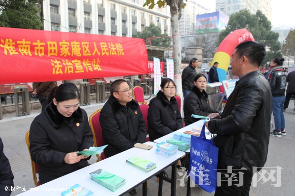 “12·4”是第三个国家宪法日,近日,田家庵区法院的干警们走上街头开展法律知识宣传,为市民解答生活中遇到的法律问题。同时,干警们还深入群众中讲解宪法,散发法治宣传材料,让群众在潜移默化中学法、懂法、守法、用法。