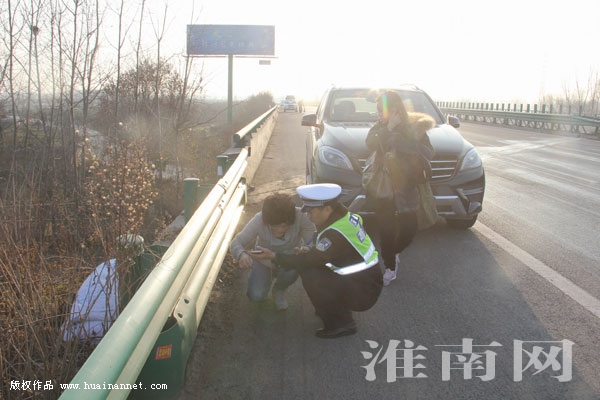 民警行驶至蚌合高速公路曹庵枢纽路段附近,看见一辆越野车停在路边上,一名女士蹲在地上,按着肚子,表情十分痛苦,民警下车询问得知,是报警人无疑。眼见女子疼痛难忍,宋旭东当机立断按住她的虎口,减轻她的疼痛。随后,宋旭东联系120急救中心救护车赶到蚌合高速淮南东收费站接应,并指派赶到现场的事故民警驾驶警车将女子及其女儿火速送下高速公路。