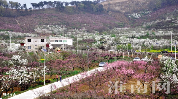 图一为春天的八公山乡程郢村,桃红柳绿,四方游客纷至沓来。