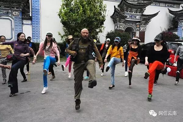 阿本枝教游客练习民间彝族打歌舞蹈