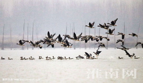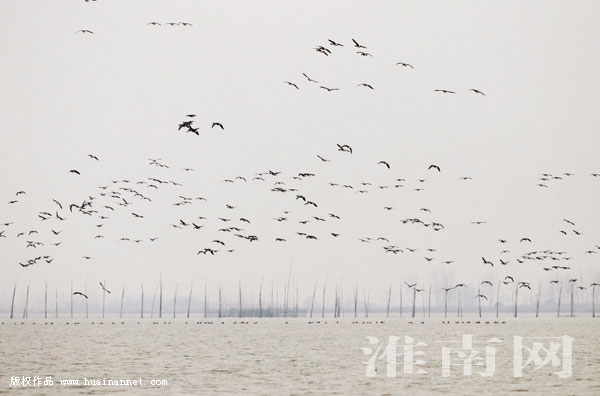 12月19日,记者在位于寿县大顺镇与谢家集区孙庙乡之间的瓦埠湖水面上,拍摄到近千只大雁飞翔、降落、栖息的壮观场面,其景象在我省沿淮地区较为罕见。
