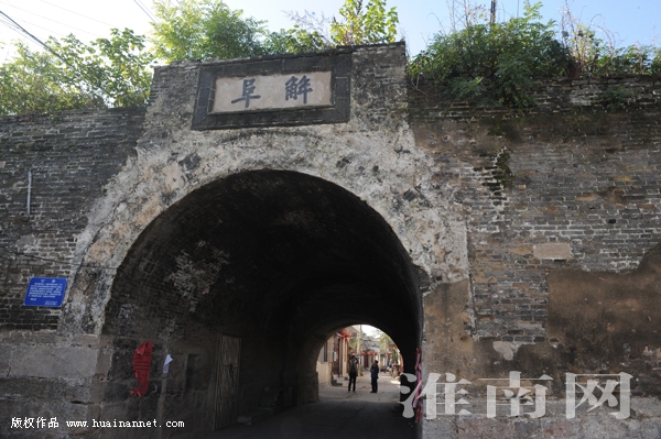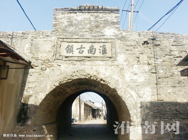 就这样走着走着,耳畔突然传来轮船汽笛的鸣响,街面越来越逼仄,感到巷内人家越显亲切的时候,距离淮河最近的一堵古城墙出现了,看上去她是那么的苍老、那么的忧伤,她肩额上冒出的小树野草,用长长的枝、叶掩映古朴苍劲的四个大字“淮南古镇””。从此出关,百米之外即是绵延千里、奔流不息、通江入海的淮河。一水一城,彼此近到岸滩上的人,吆喝一嗓子,站在城头上的人都可真真的听到。若时光退却四百年,可想这里该是怎样的一种繁华。