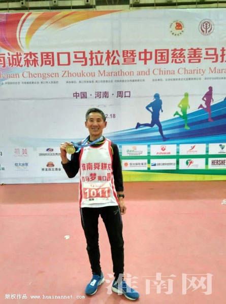 “按时吃药不如按时锻炼!”这是这位64岁老人常挂在嘴边的一句话。他叫陶硕,每逢周末有比赛,都能在赛场上发现他的身影。几年来,陶硕风雨无阻用长跑诠释人生。12月18日在河南周口,陶硕用3小时36分完成了他人生第100个马拉松比赛。在获奖照片中,陶硕手举奖牌,穿着的比赛服上印有“淮南舜耕龙,百马梦周口圆”的字样,他告诉淮河早报、淮南网记者,这次比赛虽然不是自己今年最好成绩,对他来说却是意义非凡。他到哪参加比赛,都要把印有“淮南”字样的比赛服穿在身上,向全国各地的跑友宣传淮南。按照中国田协颁布的马拉松竞赛成绩标准,陶硕还荣获“九段”段位,并且是终生制。