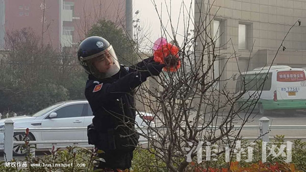 1月3日上午,有群众到凤台县公安局城北学区警务站反映称:“不知何故,凤台四中学校门口有许多马蜂乱飞”。 闻讯,凤台县公安局巡逻防暴大队三中队巡逻队员立即对学校周边进行细致排查,最终在一处绿化带中的矮树上发现了一个马蜂窝,蜂窝周围马蜂乱飞,令过往行人心惊胆颤。巡逻队员边对现场进行侦查边做好安全防护工作,同时,组织队员携带塑料袋将马蜂窝迅速套住后摘除,在短短几分钟时间内,马蜂窝被成功摘除。