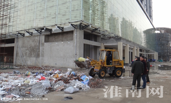 图:城管执法人员正在指挥清理暴露垃圾