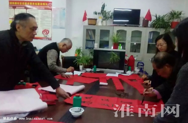 新春佳节即将来临,1月10日,田家庵区龙泉街道铁路社区组织市书画协会的“五老”志愿者为社区居民开展“迎新春,写春联,送祝福”活动。