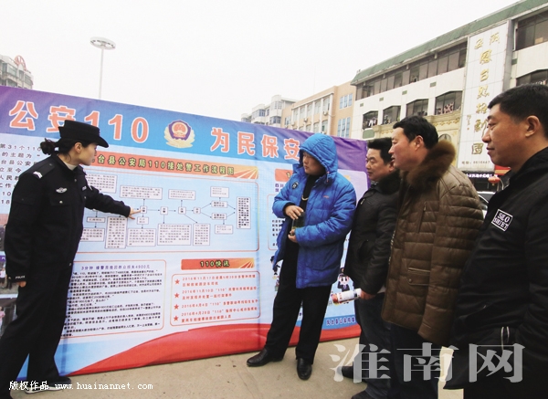 守在全国第31个110宣传日期间,凤台县公安局在城关街头开展“公安110,为民保安宁”主题活动。