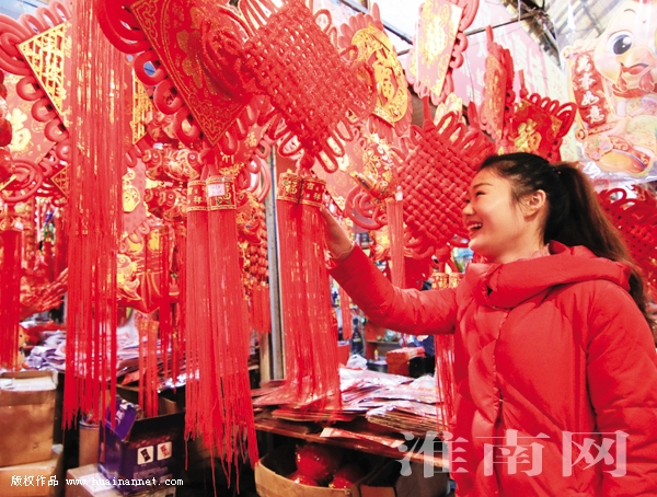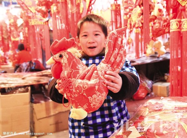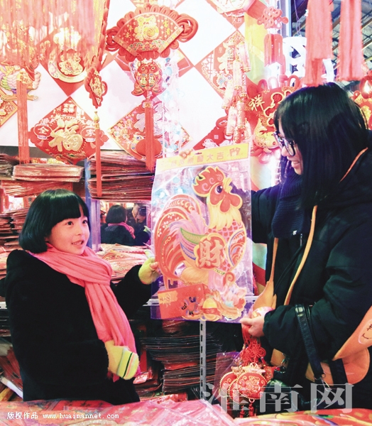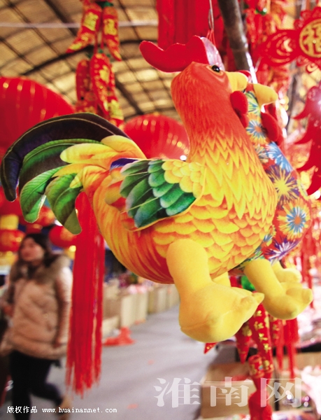 小年已过、春节临近,在田家庵区东城市场,不少市民们纷纷赶在节前采购新春饰品,对联、福字、灯笼、中国结和鸡年生肖礼品受到热捧。