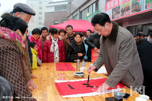 1月19日上午,淮南市市场建设服务中心购买纸墨,邀请书法家们在老龙眼菜市场开展为市民写春联、赠春联活动,3个小时内近500副春联被市民免费领走。拿走两副春联的市民张先生高兴说:“书法家的字写的真漂亮,这贴在门上既喜庆又上档次,春节虽然还没到,但市市场建设服务中心开展的这项活动,让我们已经感受到了浓浓的年味。”
