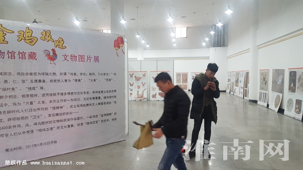 金鸡报晓,“鸡”祥如意,一人得道,鸡犬升天,丁酉新春来临之际,来自全国20多家博物馆400余件鸡、凤、神鸟题材的文物和民俗作品图片汇聚淮南,一起向你讲述“金鸡报晓”的人文故事,全景展现人类悠久的养鸡历史,可令人们从中感受“鸡鸣五德”的文化意象,欣赏“雄鸡百变”的艺术,体验“神鸡辟邪”的民俗文化,为淮南市民奉献了一场文化大餐。