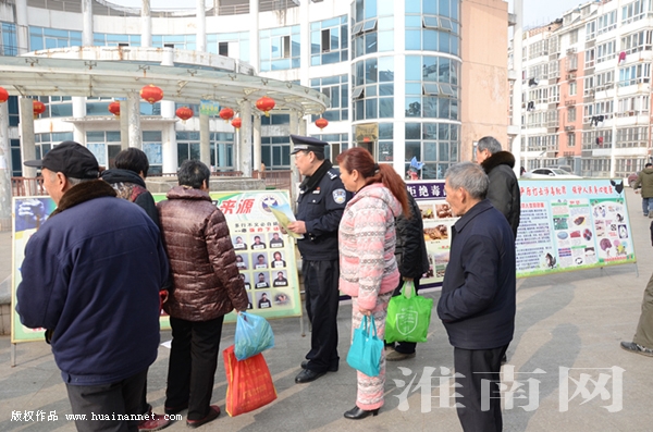 为了让社区居民了解预防毒品侵害的知识,鼓励大家积极参与禁毒。2月6日上午,谢家集公安分局禁毒大队以及望峰岗派出所的民警们来到淮望社区广场,在寒风中向社区居民宣传禁毒常识。