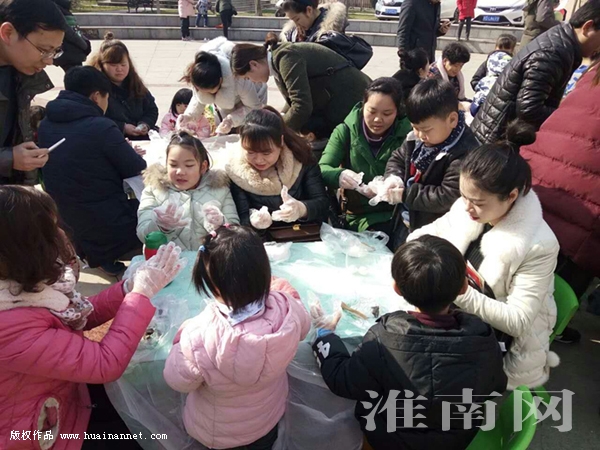 2月10日,田家庵区淮橡社区里一片热闹景象,这是社区居民们在参加庆祝元宵节,一同包汤圆的活动。