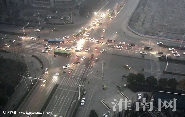 图为2月20日早6时30分左右,淮河大道因线路故障出现红绿灯失效,路面出现轻微混乱。(图片由淮南市交警支队提供)