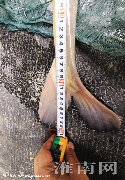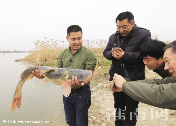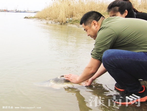 日前,我市爱心人士常守君先生在淮河硖山口水域,放生一条体形巨大的野生淮王鱼。记者经现场测量,该鱼体长99厘米,体重7千克,为多年以来淮河流域所罕见。据经营餐饮业的常先生介绍,2月17日他在淮河边某集市发现这条捕捞上来的淮王鱼,因为知道该鱼是珍稀的国家二级保护动物,就当即花5000元买下并放入水箱进行保护。后经与几位朋友商量,决定在淮王鱼集中繁殖、活动的硖山口区域,进行了野外放生。常守君先生为我市知名慈善人士,2010年玉树地震时,他与我市数名红十字会志愿者驱车前往灾区,在第一时间向灾民们送去了价值数万元的药品和生活物资,被评为当年“感动淮南十佳”。