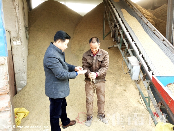 图:老郑(左一)查看收购粮食的质量
