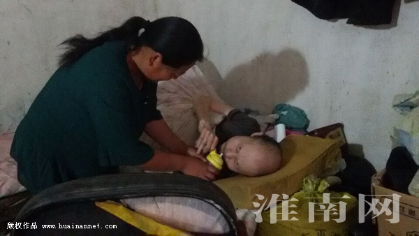 图:钮成玲给公公喂水(淮南市妇联供图)