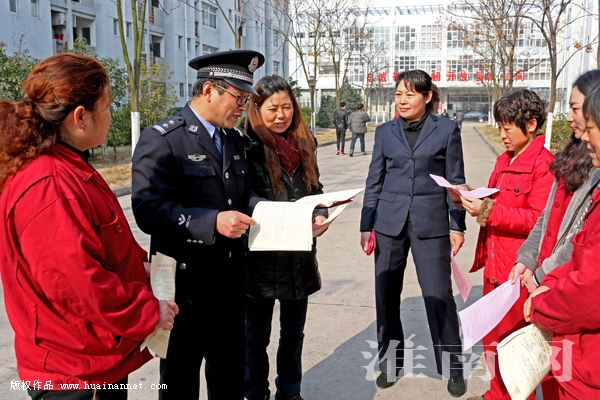 日前,市公安局潘北派出所组织民警深入辖区,开展以“关爱妇女、反对拐卖”为主题的宣传活动,通过摆放展板、发放宣传材料等形式,让广大女性掌握防拐知识,正确使用法律武器,自觉投入到打击拐卖妇女儿童的犯罪行动中来,为打拐工作创造了良好的社会舆论环境。图为民警正在为妇女讲解法律知识。