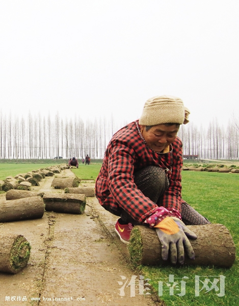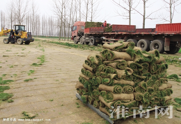 3月26日,寿县正阳关镇红旗村村民正在收割草坪装车外运。据了解,寿县沿淮河和淠河的双桥、涧沟及正阳关等乡镇,因地制宜开展草坪种植,不仅收成较传统农作物有较大提高,而且村民通过土地流转、家门口务工等形式增加收入,实现脱贫致富。