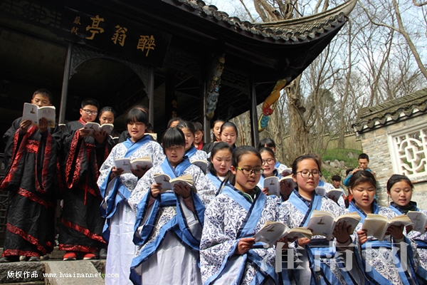 图:同学们身着汉服诵读《醉翁亭记》