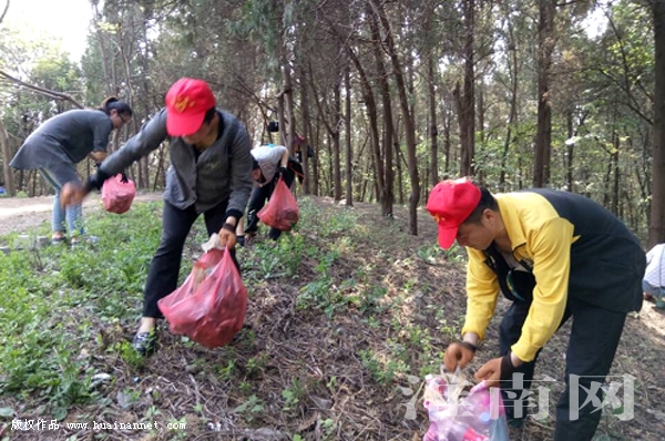 4月15日下午,国庆街道罗马广场社区组织党员志愿者10余人来到舜耕山开展义务捡垃圾活动。