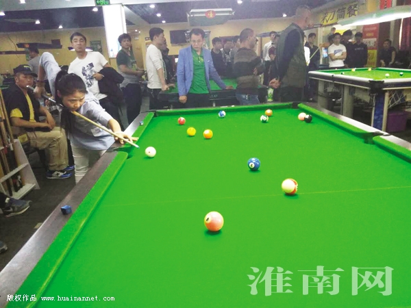 4月22日下午,安徽中式台球王争霸赛在淮南市谢家集区白马商业广场的来力台球馆举行。高手云集、巾帼不让须眉是此次比赛的一大亮点。比赛吸引了黄山、淮北等市及本市百余名台球高手,参加的选手有获得过全国九球冠军的陈远龙,青少年全国冠军郑肖淮,安徽第一杆陈志刚和上赛季荣获安徽球王的淮南台球高手刘金柱等。