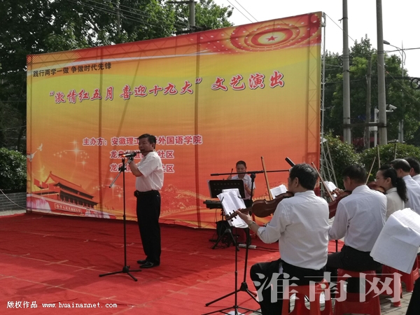 5月5日下午,在柳郢路南端九十七菜市街旁的一处广场上,由龙泉街道南岭社区、金岭社区和安徽理工大学外国语学院联合举办的“激情红五月 喜迎十九大”文艺演出欢乐唱响,吸引了众多居民驻足观看。