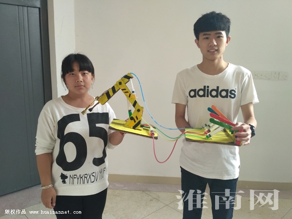 在这次活动中,共有40多名大学生报名,收到近30个手工艺作品,最终有11个优秀作品进行选拔。大学生们用旧报纸做了绿色的大树、用易拉罐雕刻成小鸟、用吸管做了一架钢琴、用废旧鞋盒做了一个puppy house……每一个手工艺品都做得非常精致,最让大家耳目一新的是来自2016级医学院的杨阳、刘丽和黑钰共同创作的“大黄蜂”,这个手工艺品用的都是废旧物,但其加入了物理原理,通过五支吸管内的液体压力操控纸板做的抓手,完成旋转、上下移动和开合等动作,可以轻易地抓起一个纸盒,当现场演示时,大家都被这“高科技”惊叹了,纷纷拍手说:“这个好,这个好!”