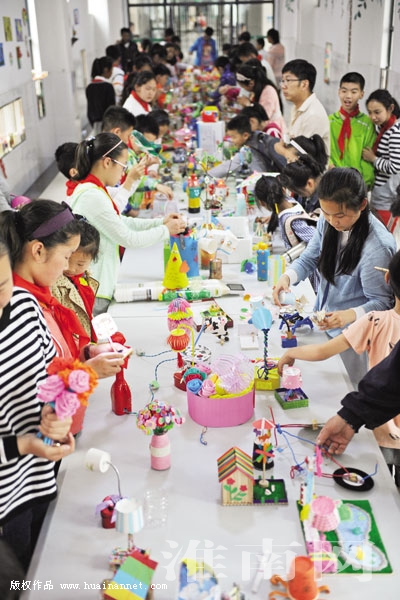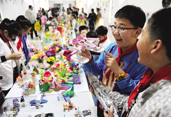 淮师附小山南校区的孩子们在展示创意科技小制作。近日,淮师附小山南校区开展“让科学流行起来”第三届校园科技周活动,鼓励学生利用废旧物品和科学知识制作创意作品、小发明,通过校园科技小创客评选,激发学生学科学、用科学、爱科学的热情。