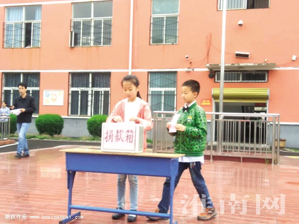 图:田家庵区第十九小学师生为金学苗老师捐助现场