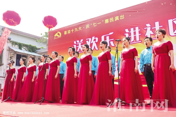 群众文化群众演,群众文化演群众。6月11日下午,田家庵区淮滨街道淮河路社区里歌舞飞扬,由淮南市文化馆主办的“送欢乐,进社区”演出活动顺利进行。据了解,“送欢乐,进社区”是淮南市文化馆近年来推出的一项广受人民群众喜爱的文化惠民活动,用贴近群众生活的文化演出,表达党和政府对人民群众文化生活的关心和关爱。