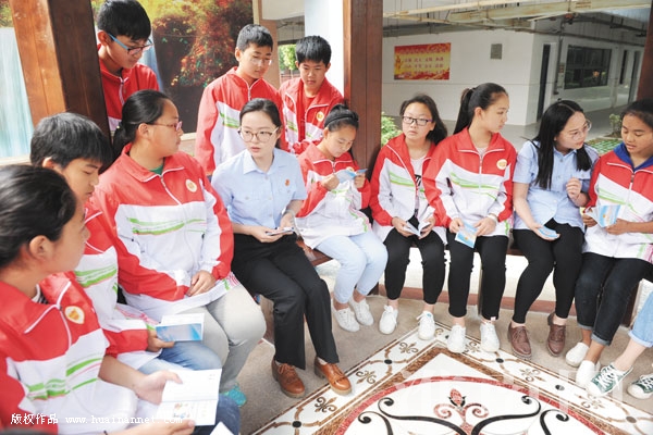 图为田家庵区法院少年法庭法官通过真实案例向学生讲解非法图书的危害性。