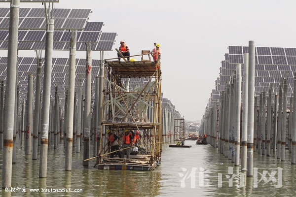 日前,国家电投淮南窑河渔场“渔光互补”光伏发电项目部分建成并网发电,开启了水下养殖、水上发电的双赢模式。该项目占地约6800亩、总投资16亿元、规划建设容量200兆瓦,全部建成投产后,年平均发电量为19200万KWh,每年可节约标准煤5.76万吨,目前项目正加快建设中。