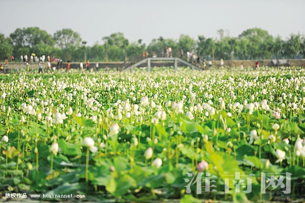 进入夏至时节,毛集实验区焦岗湖国家湿地公园,56个品种的荷花淀进入赏荷最佳时期,游客欣赏荷花美景。焦岗湖属于淮河低洼地,曾经是淮河发大水必淹之地。近年来,当地通过招商引资,将昔日的“水口袋”打造成今日旅游“聚宝盆”,各类景点提质升级,美不胜收,当地渔民通过生态环境保护,人水相依发展旅游产业走上致富之路。