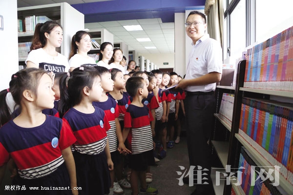 图:小朋友们参观阅览室