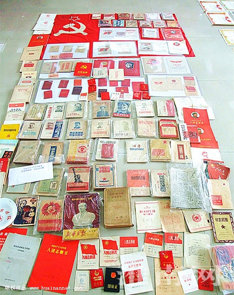 近日,为迎接中国共产党建党96周年,淮南收藏爱好者苏正礼在淮南师范学院党史教育史料筹建馆里,于2万多件红色藏品中,挑选出一批文物文献进行整理装裱,与广大师生见面。
