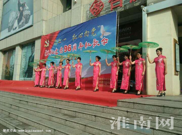 6月30日,田家庵区城管志愿者协会“学英”志愿者服务队约130名志愿者在一购物中心门前广场,以大合唱、舞蹈、模特走秀等形式,庆祝建党96周年。